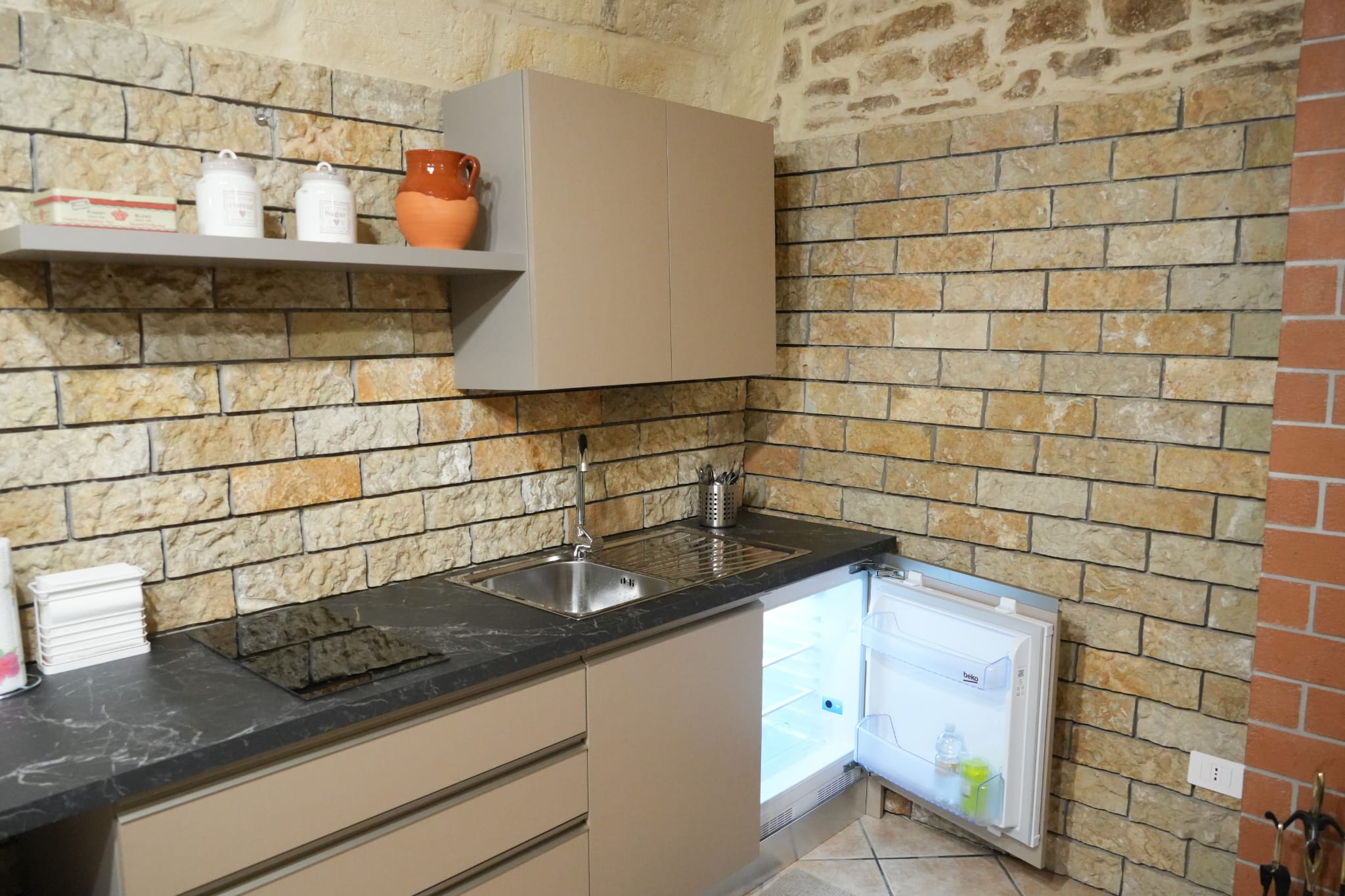All’interno dell’appartamento è disponibile una zona cucina dotata di lavabo, fuoco elettrico, frigo, macchina del caffè, forno microonde, e tutto il necessario per darvi il massimo del confort e sentirvi come a casa.